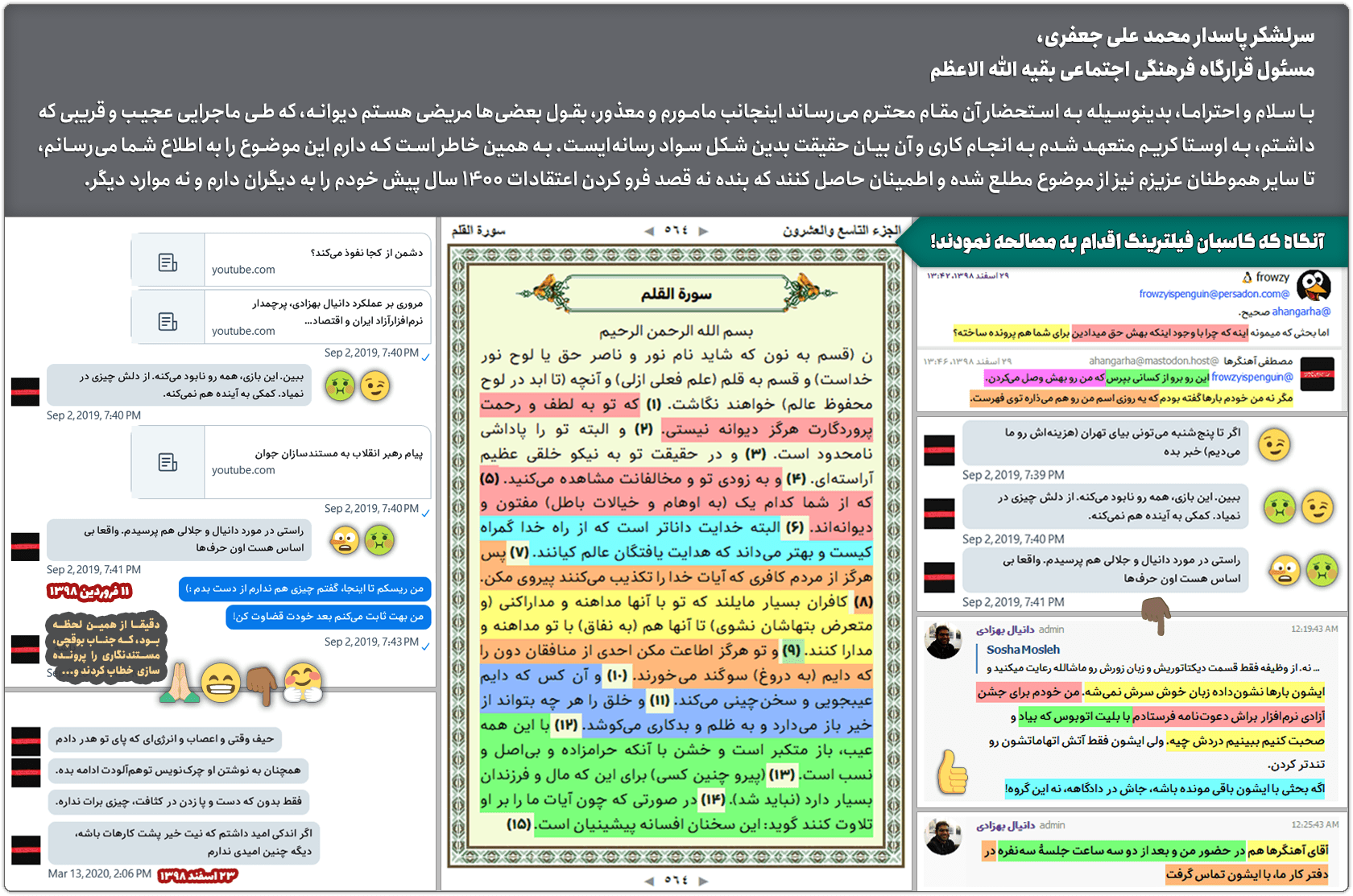 اگر در راستای احیای حق و حقوقی که از شما ضایع شده، ناچار باشید یک سری حقایق تلخ را بصورت عمومی بیان سازید و از آن مهمتر برای جلوگیری از وقوع یکسری اتفاقات شوم که مرتبط به «طرح صیانت» هستند، لازم باشد نسبت به آنها مردمتان را مطلع و آگاه سازید! آنوقت شما جای من بودید، چگونه عمل میکردید؟!