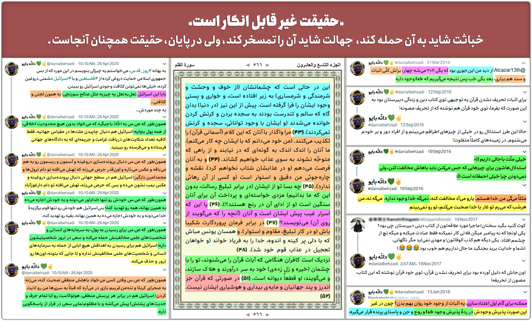 باید مراقب باشیم که مبادا چیزی بگوییم، که تودههای مردم چیزی را متوجه بشوند که نباید بشوند، باید مراقب باشیم که مبادا حقیقتی را بیان کنیم، که باعث بر ملا شدن و رسوایی دروغهای مفسدان و باندها و گنگهای مافیایی داخلی و خارجی ایران بشویم. و البته این همه ماجرا نیست، از آن طرف هم میبایست مراقب باشیم که یهویی حرفهایمان تبدیل به سوژههای مورد علاقه موجسواران سیاسی و طوفانها توییتری مخالف و موافق نظام نگردد و ناخواسته وارد زمین دشمن و پازل بازی آنها نشویم.
