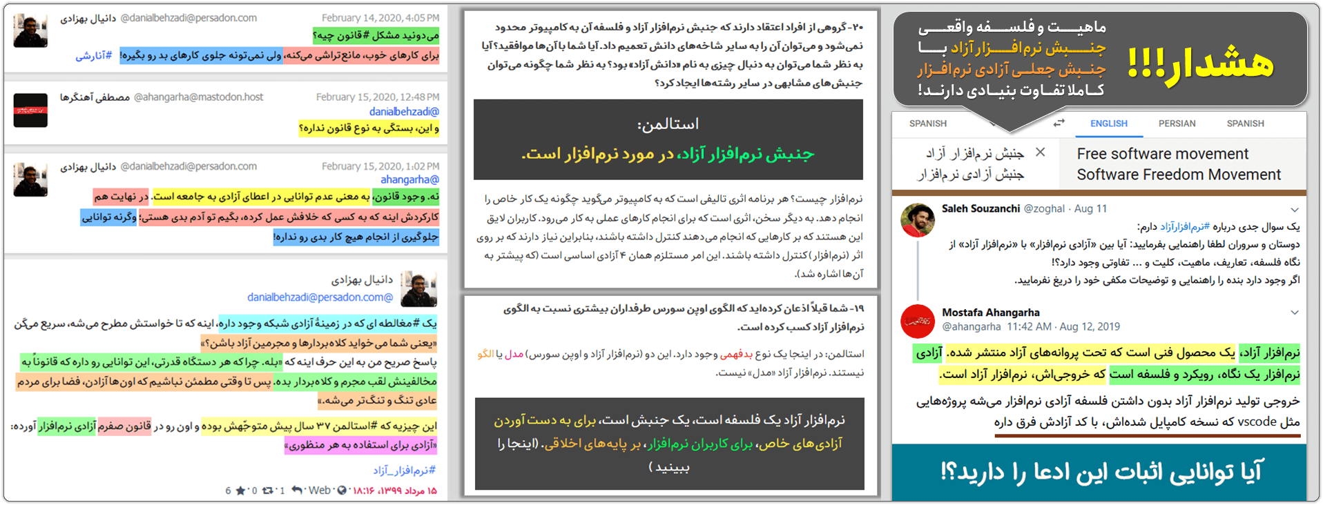 همچنین نظر به اینکه اعمال فردی آقای محمدرضا حقیری قزوینی و اعمال جمعی سایر اعضای باند/قبیله آزادی نرم‌افزار، که به استناد دلایل اینجانب که شامل اقرار کتبی، مستندات تصویری و … می‌باشد و همچنین به استناد مواد ۴۹۹ و ۵۰۰ قانون مجازات اسلامی تعزیرات و مواد ۴۹۹ مکرر و ۵۰۰ مکرر قانون مجازات اسلامی تعزیرات مصوب ۱۳۹۹٫۱۱٫۱۵ کلیه این اعمال واجد وصف مجرمانه غیرقابل گذشت و در رده فساد فی‌الارض قرار می‌گیرند، لذا بدین وسیله تعقیب و مجازات این شخص و سایر معاونین ایشان را از محضر عالی استدعا دارم.