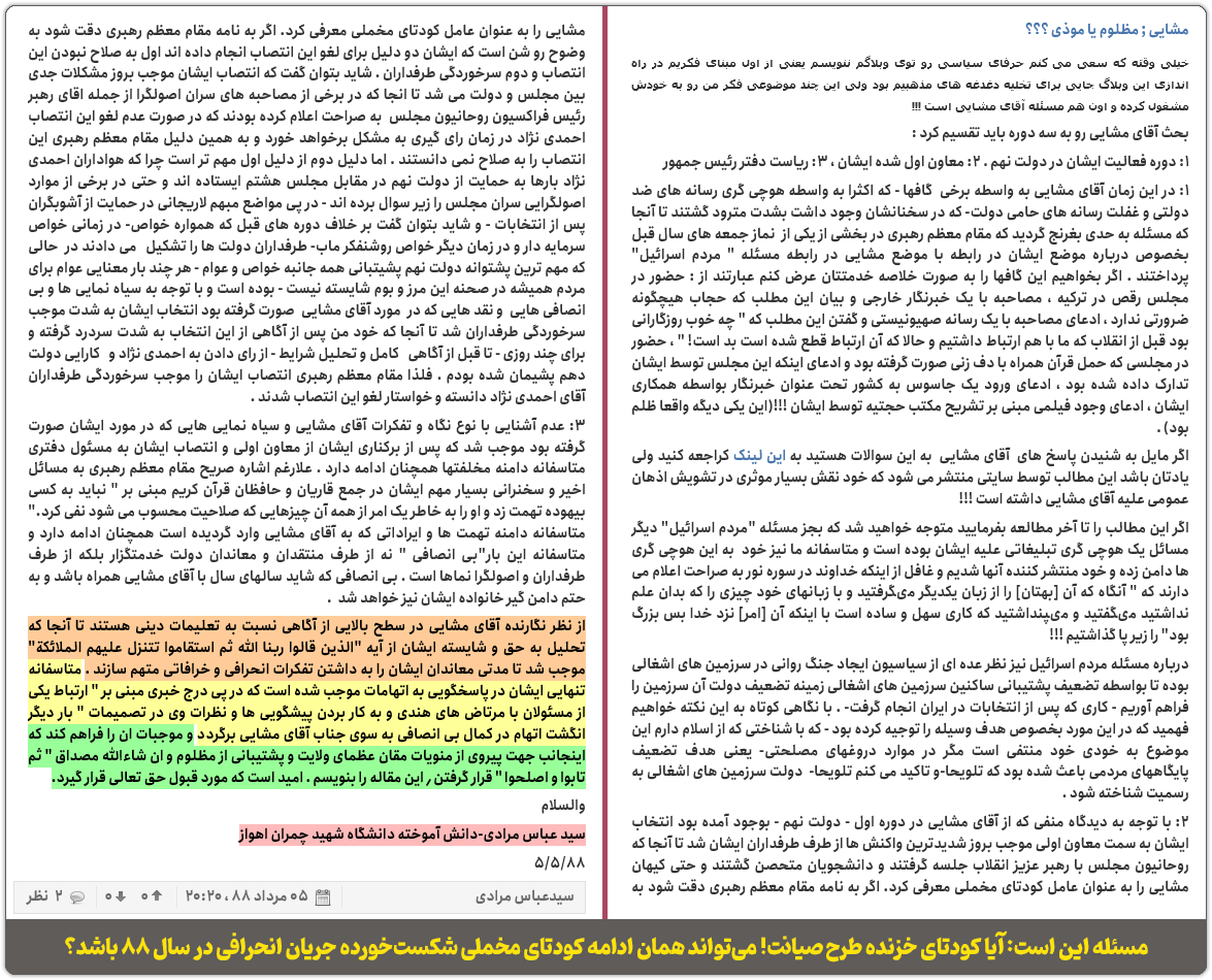 دو کارشناس ارشد حکمرانی مملکت در فتنه ۸۸