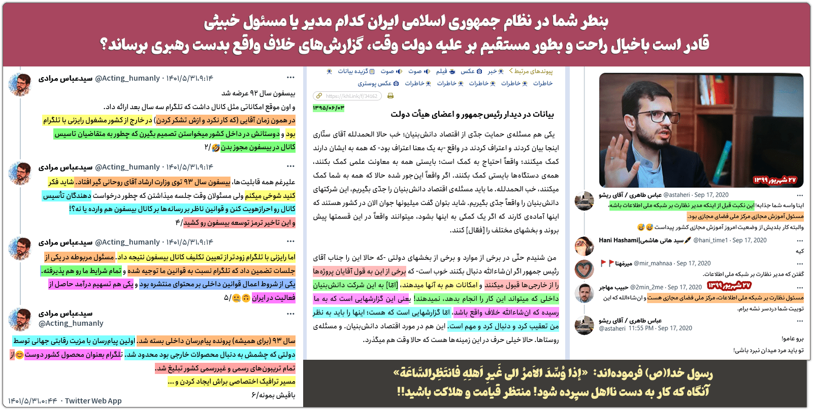 سیدعباس مرادی: ای خائن تکفیری! بشنو پاسخ تهدیدت را...! Posted byاستاد طوفان۲ مهر ۱۴۰۱۱۱ مهر ۱۴۰۱Posted inسیدعباس مرادیTags:سیدعباس مرادی, طرح صیانت, محمدرضا حقیریوقتی بجای توسعه و پیشرفت!این انقلابینما دار با جاهلیتش یک مملکت را به نابود میکشاند…سوال:واقعا چرا این شخص و تیمش همچنان میبایست در مرکز ملی فضای مجازی باقی بماند و در راس امور و تصمیمگیرهای مهم مرتبط با حوزه فضای مجازی دخالت داشته باشد؟ لینک کوتاه این صفحه: https://toofan.souzanchi.dev/p3laPages: 1 2