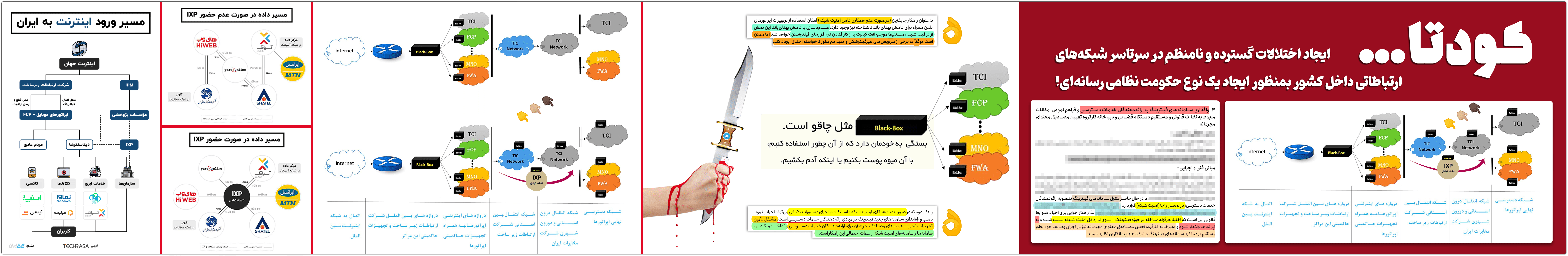 {اصلاح شود}همچنین این حکمران نماهای منافق و نفوذی که در ساختار نظام حکمرانی کشور عجیب جای خوش کردند، طی همین دو سال گذشته اخیر، بویژه از وقتی که در امر خالصسازی نیز توانستند به توفیقات خوبی دست پیدا کنند، موفق شدند با اعمال عجیبترین اختلالات بروی ارتباطات اینترنت بینالملل، توانستند با تغییر مسیر ترافیک همین فیلترشکنهای داخلی که دارد مورد استفاده مردم قرار میگیرد، ضمن کسب درآمد بسیار عجیبی موفق شدند با گذر دادن ترافیک از دیتاسنترهای داخلی، آمار ترافیک شبکه داخلی(ملی) را نیز بطور چشمگیری تغییر و بالا ببرند.
